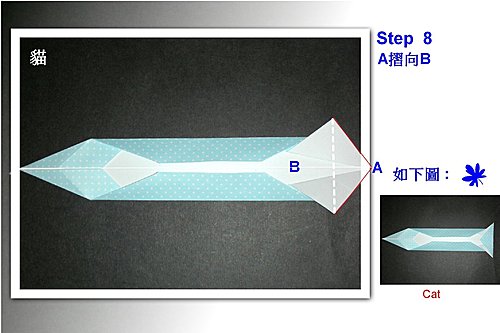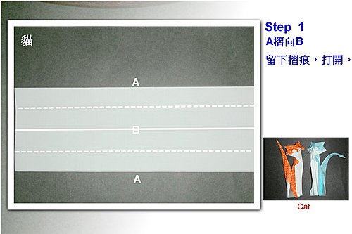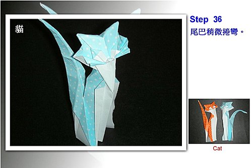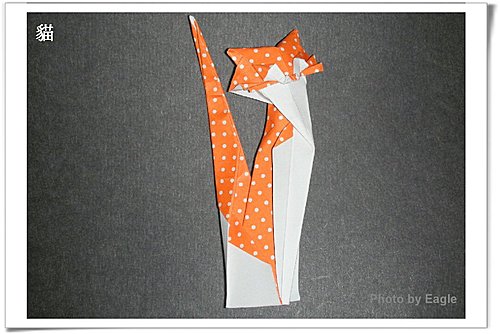 正方形 15 cm x 15 cm 貓型較可愛,只是方形紙無法摺尾巴。
