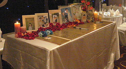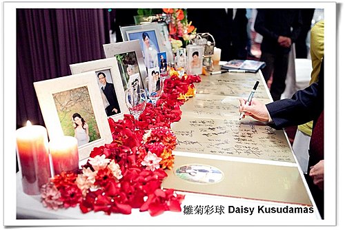 這是兒子婚禮上的佈置,再加上玫瑰花瓣與新人的婚紗照,