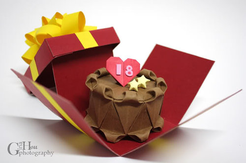 在摺紙作品之外加上她個人巧思的蛋糕盒,讚!!!