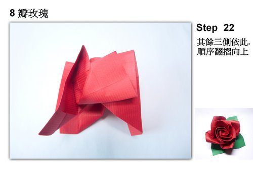 將8瓣玫瑰摺出花瓣有角度,讓8瓣玫瑰有不同風貌,